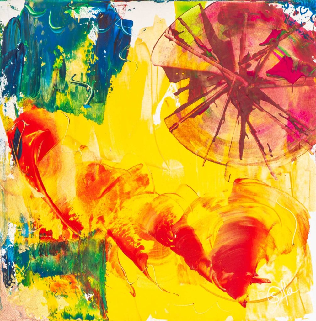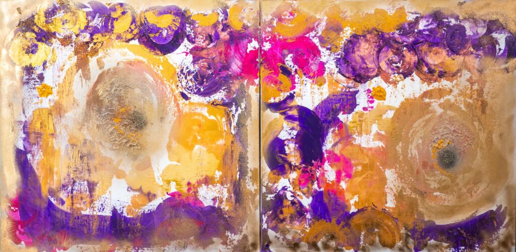 Auto-dictat, her art progressively engaged her in reflections on the collective consciousness; art and human accompaniment merge towards an intuitive, spiritual, assumed creativity transcending the simple boundaries of the canvas.