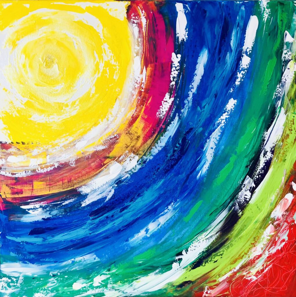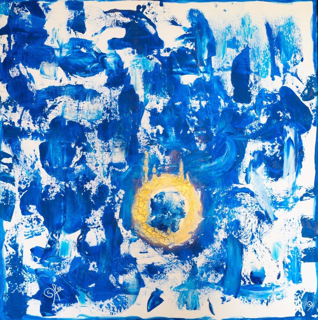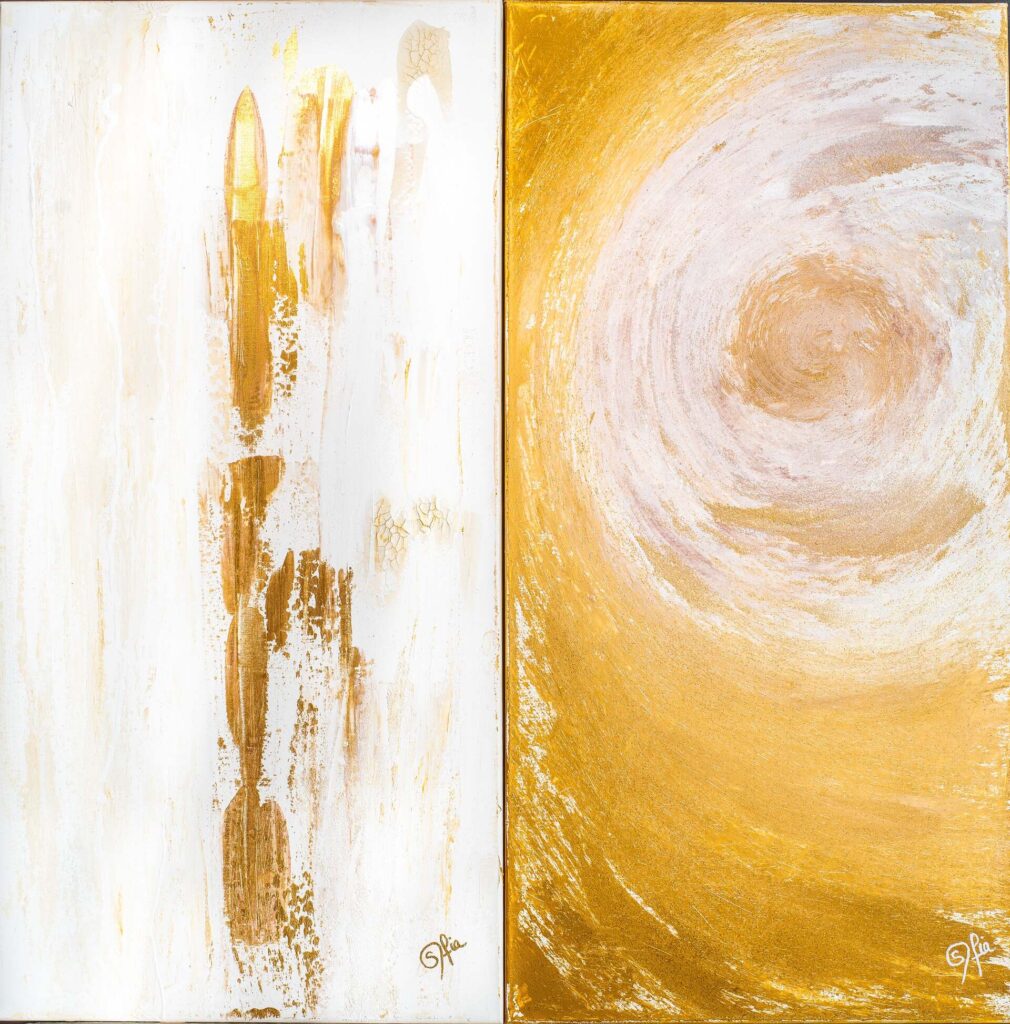 Fascinated by the mysterious beauty of the Universe for as long as she can remember; the moon, the stars and the sun became her refuge during difficult moments of her childhood. In these early years she perceived colour from the vibration of places and people as spots on her field of vision until the age of seven when her eyesight rapidly deteriorated plunging her into another vision, that of her inner world.