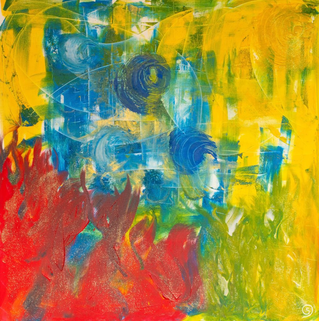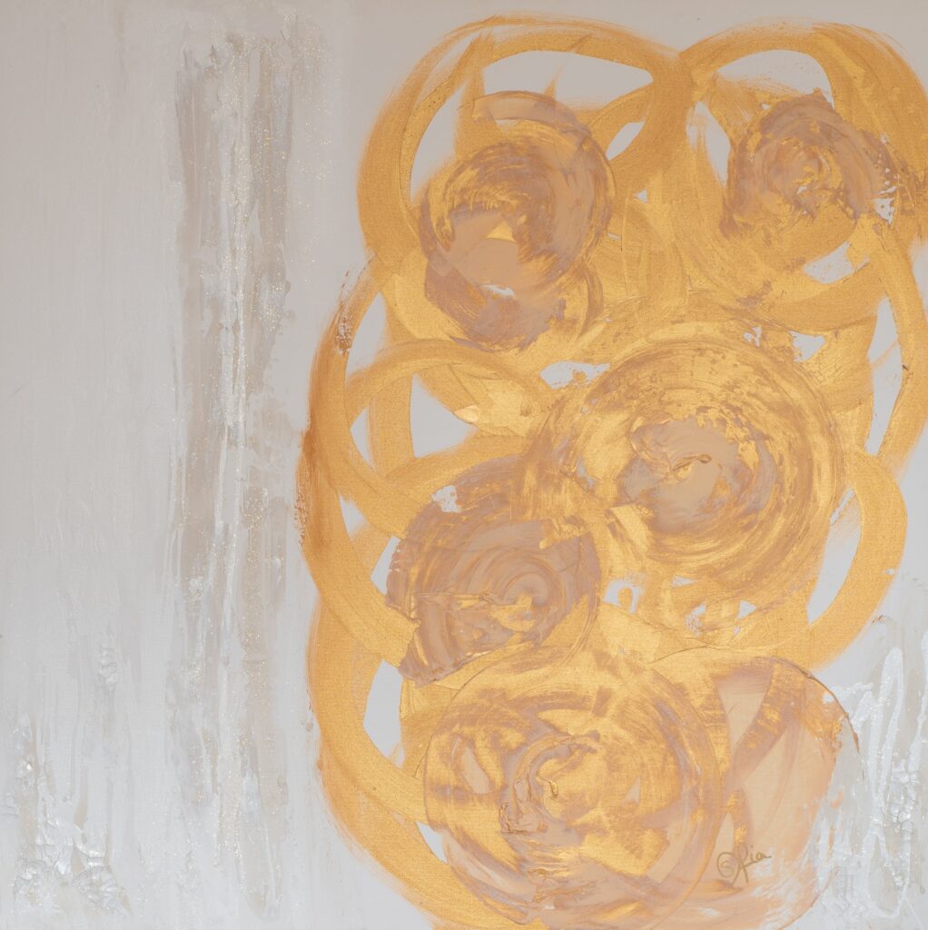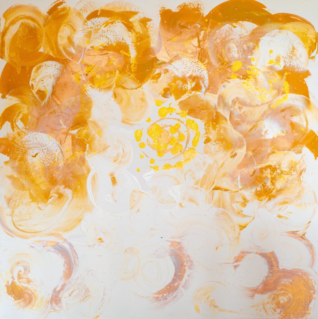 Fascinated by the mysterious beauty of the Universe for as long as she can remember; the moon, the stars and the sun became her refuge during difficult moments of her childhood. In these early years she perceived colour from the vibration of places and people as spots on her field of vision until the age of seven when her eyesight rapidly deteriorated plunging her into another vision, that of her inner world.